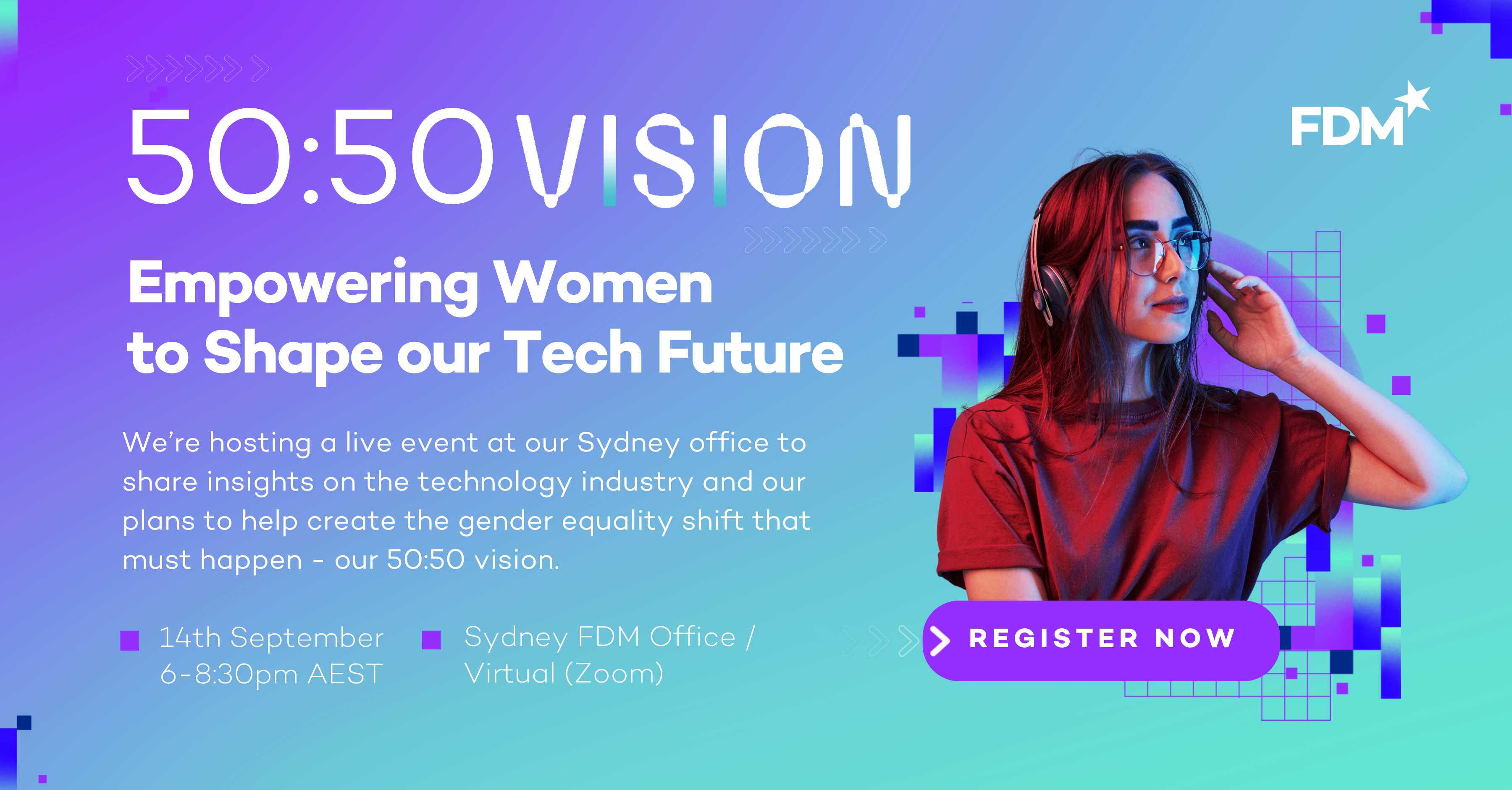 You’re invited to find out what FDM are doing to close the gender gap at our new live event: 50:50 Vision - Empowering women to shape our tech future!